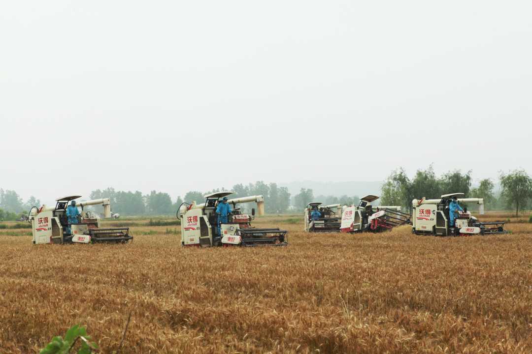 枣阳市吴店镇小麦机收现场。李晓军摄