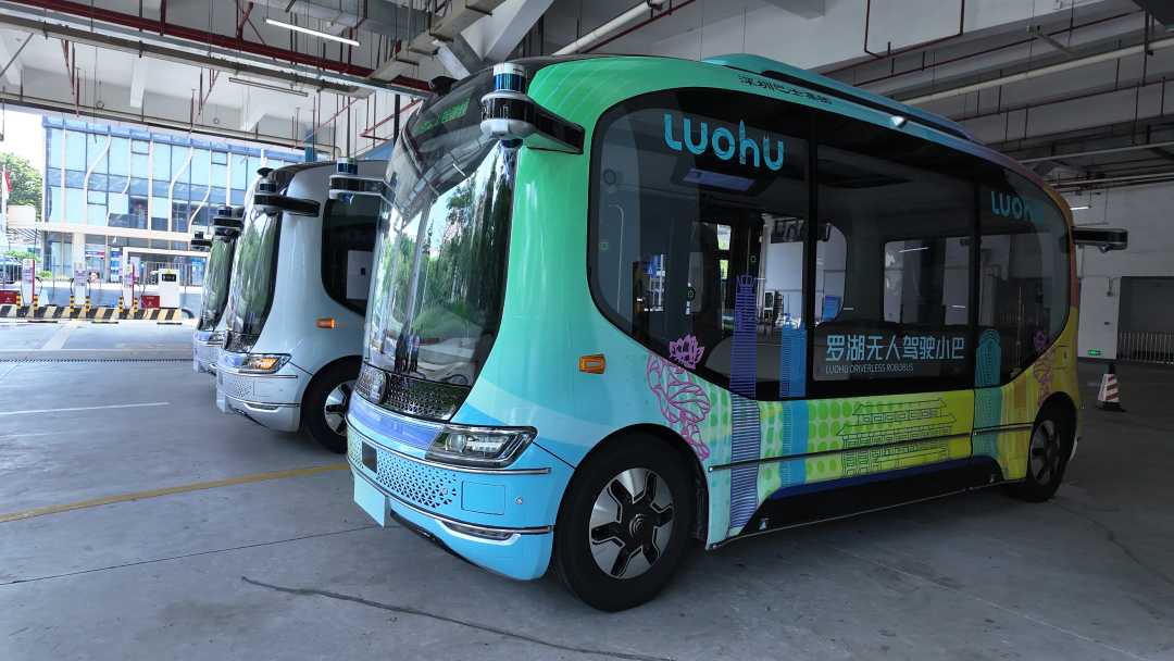 深圳罗湖无人驾驶小巴整装待发。