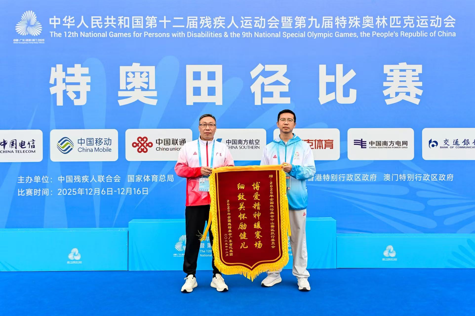 在中山市兴中体育场,全国残特奥会广东代表团团部官员张智杰、项目主管袁梓薇等人向中山赛区执委会赠送锦旗;在中山体育馆,全国特奥滚球裁判委员会同样向中山赛区执委会赠送了锦旗;在火炬开发区的特奥轮滑赛场和特奥举重赛场,也收到了来自相关代表团的感谢信……当日,中山赛区收获了多面锦旗和各方赞誉,这不仅是对赛事组织的褒奖,更是对中山这座城市博爱精神与人文温度的高度认可。“从抵达中山的那一刻起,我们就感受到了专业与温暖,一切安排都体现着精细与关怀。”一位参赛代表团领队表示。