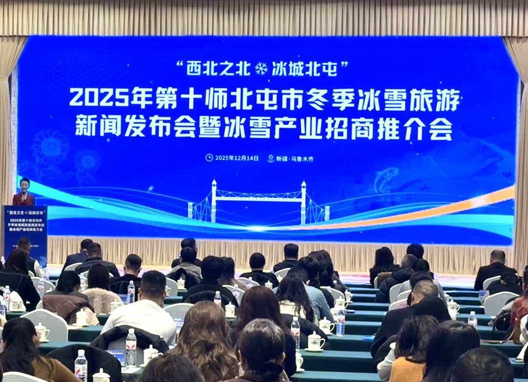 12月14日,2025年第十师北屯市冬季冰雪旅游新闻发布会暨冰雪产业招商推介会召开。杨泽宇摄
