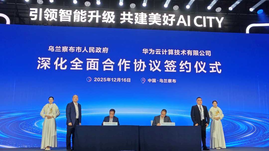 会上,乌兰察布市政府与华为云签署了深化全面合作协议,并联合发布了2025年乌兰察布市智慧城市AI+场景应用。峰会还发布了涵盖智能制造、智慧园区、数字政务等多个重点场景的“内蒙古AI先锋计划”。