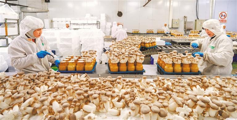 12月16日,湖南省永州市冷水滩区湖南省宇秀生物科技有限公司,工人在采收瓶栽杏鲍菇。该基地采用生物技术,日产杏鲍菇30余吨。雷中祥摄(中经视觉)