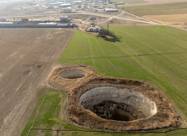 土耳其科尼亚省一处农田出现塌陷坑。图片来源:央视新闻客户端