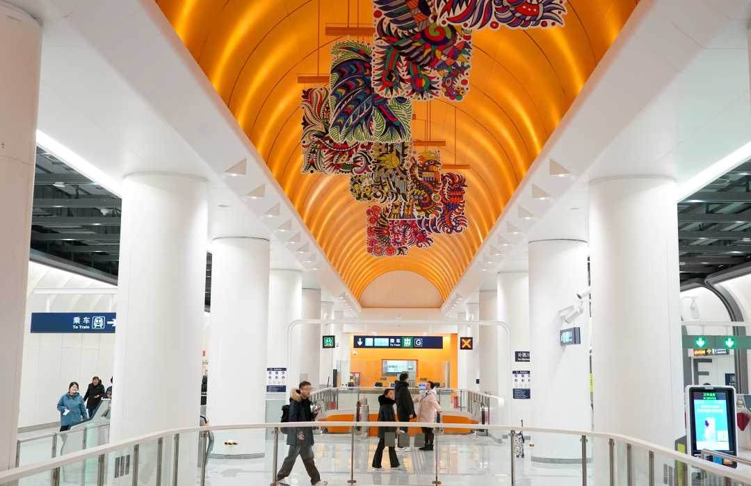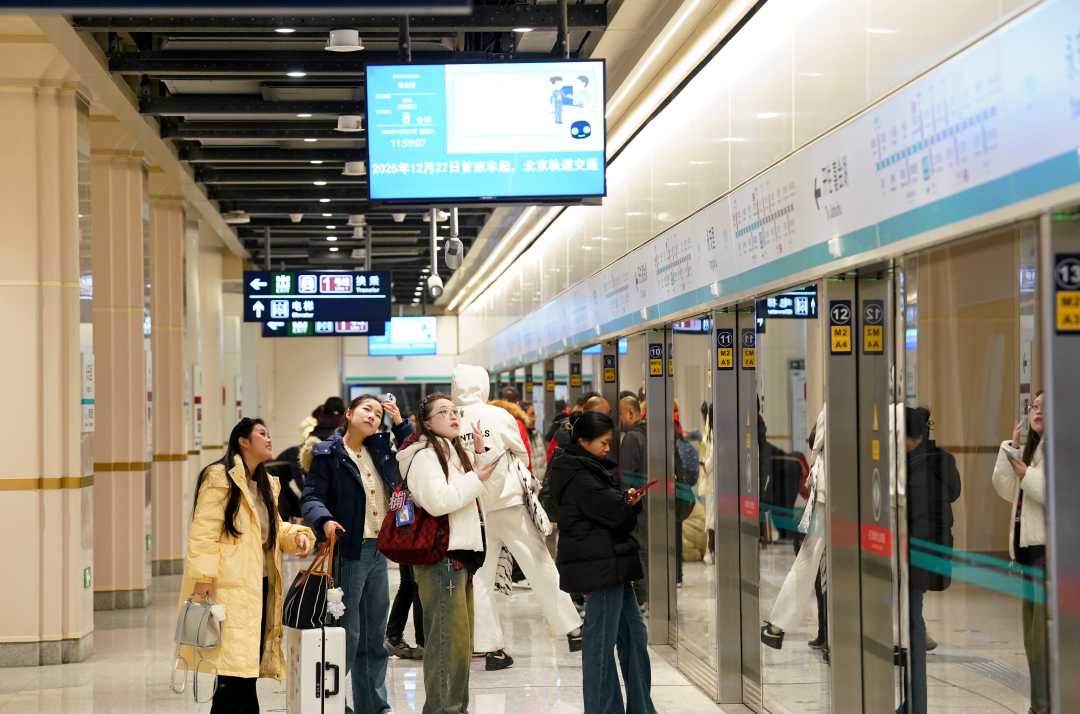 12月27日,乘客在北京地铁17号线东大桥站准备乘车。该站通过 “凤鸣东方” 寓意设计,融合传统文脉与现代张力艺术表达。本报记者赵晶摄
