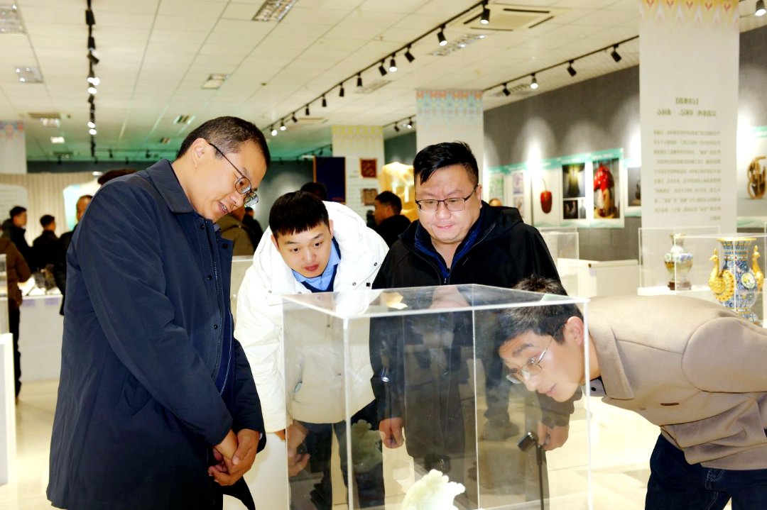 《艺术与设计》杂志社社长、总编辑钱竹介绍,“和美共生 文润心田”中国和田文创暨公共艺术大赛作品涵盖平面视觉、服装首饰、红色文创等类别,以传统与当代对话、艺术与科技融合、审美与生活共生为主线,深度挖掘和田文化资源,将昆仑神话、玉石文化、艾德莱斯绸、桑皮纸技艺等传统元素融入当代设计。特设的“京和雅韵”展区,展出北京景泰蓝工艺与和田玉石结合创作的《京和同心》石榴摆件,以及融合两地非遗技艺的系列作品,彰显首都与边疆的深厚情谊。