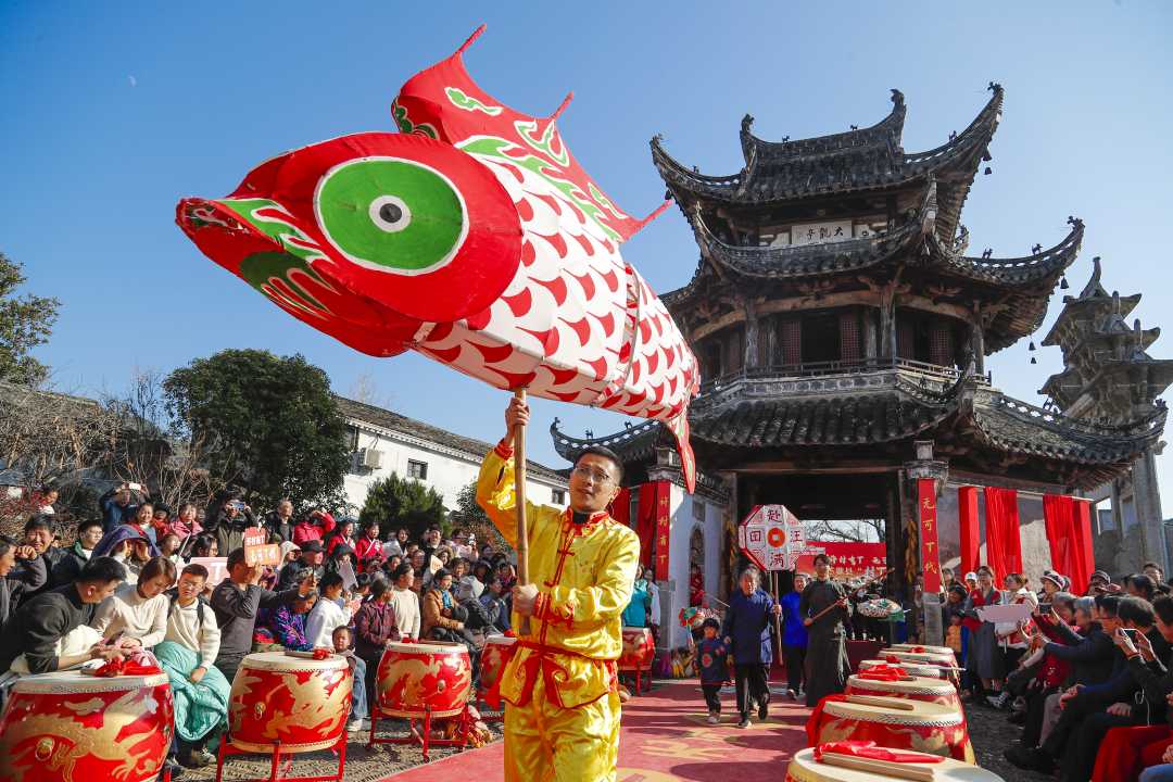 12月28日,安徽省黄山市歙县许村,村民在“村T”上走秀,迎接新年。