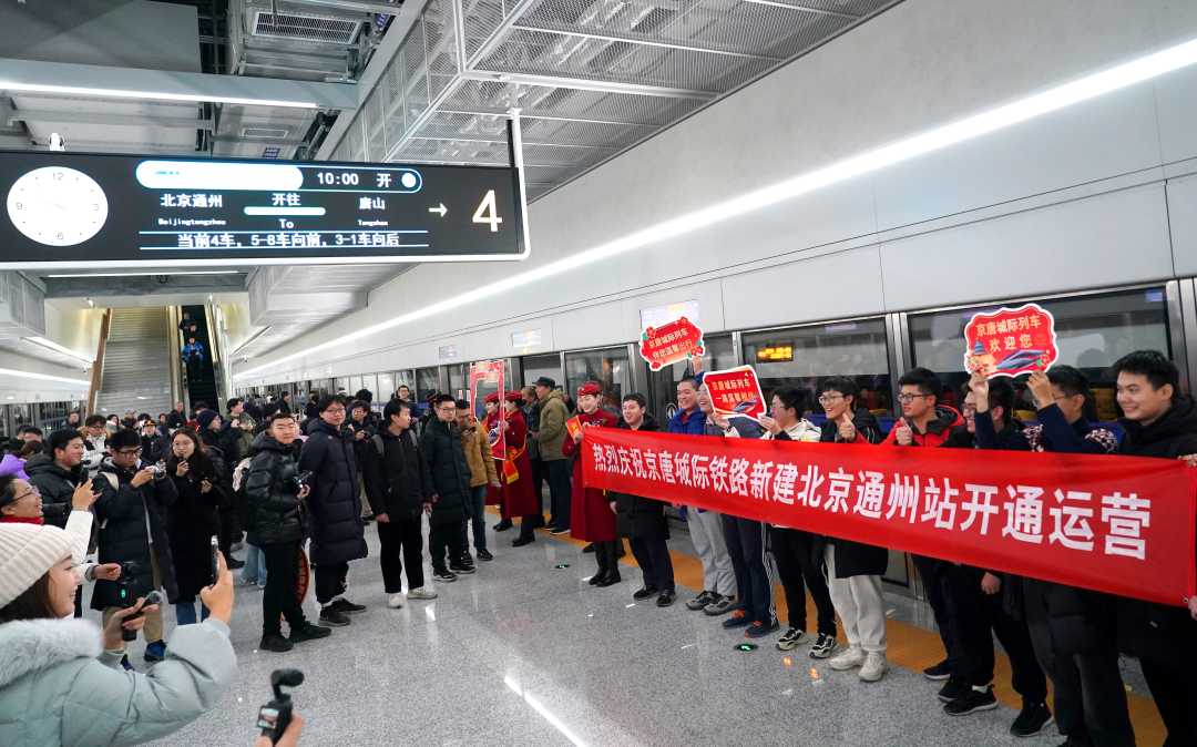 12月30日,乘客准备搭乘从北京通州站开往唐山站的首趟列车。本报记者 赵晶摄