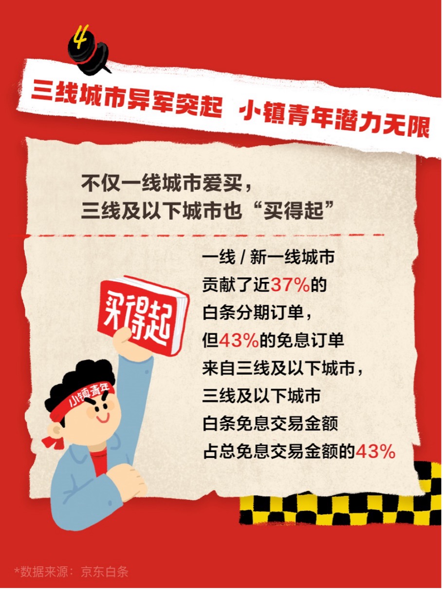 数据显示,三线及以下城市白条免息交易金额占比达43%,大家电、母婴用品等品质消费品类分期订单量同比增长32%,新农人相关农用设备分期订单同比增幅也较为显著。