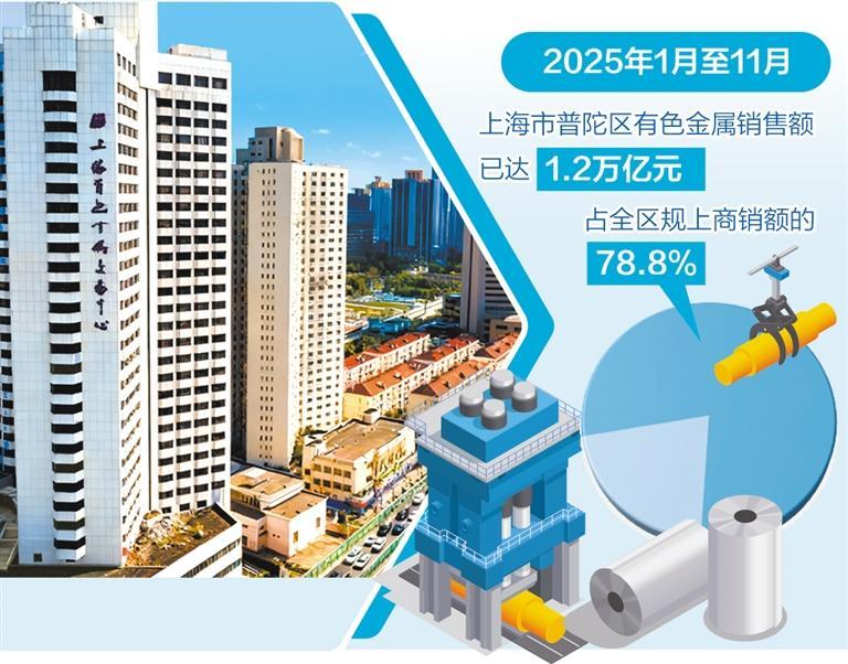 近年来,作为上海大宗商品贸易的“老牌核心区”,普陀区加快推动大宗商品贸易高质量发展。数据显示,2025年1月至11月,普陀区有色金属销售额已达1.2万亿元,占全区规上商销额的78.8%。