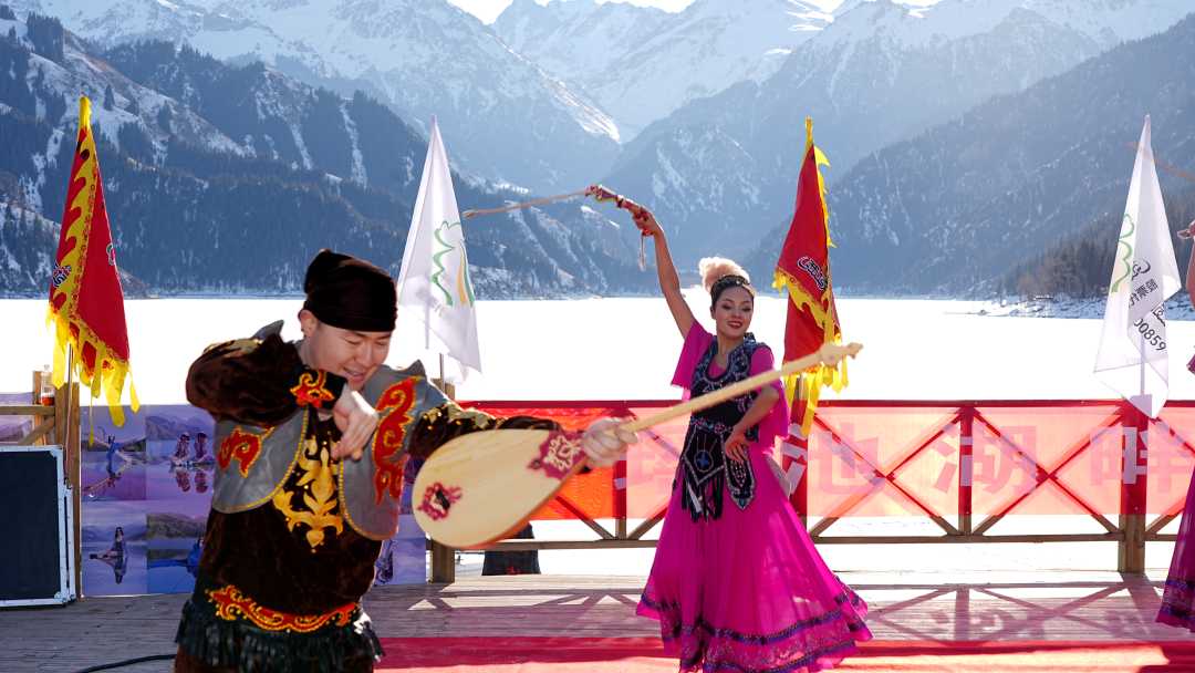 天山天池景区举办元旦祈福迎新活动。阿斯巴提摄
