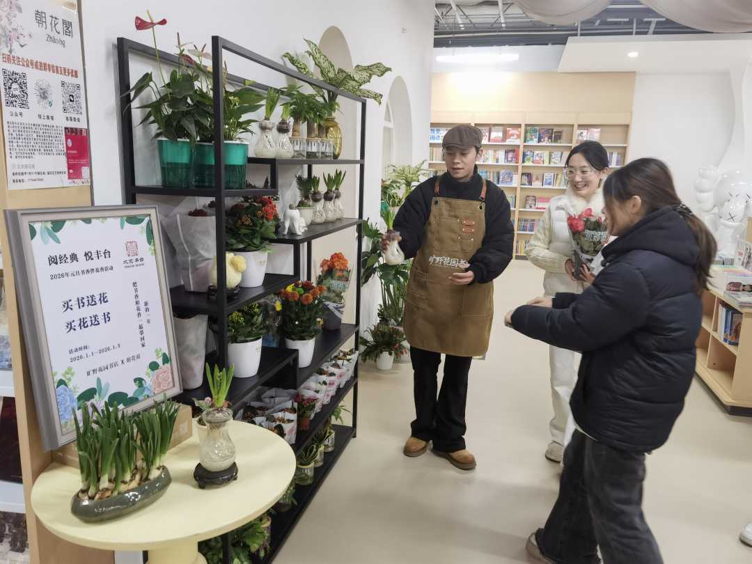 元旦假期,北京市丰台区开展“书香伴花香”跨界消费活动,联动和平书店、旷野花园书店、米莱知识宇宙店、一方书庄、逍遥邮书局等5家特色书店,与朝花阁等花卉企业,开展购花、购书双向优惠活动,推出“满额互兑、买赠双向、折扣叠加”新年机制,让市民“逛花市有书香相伴,逛书店得花香浸润”。