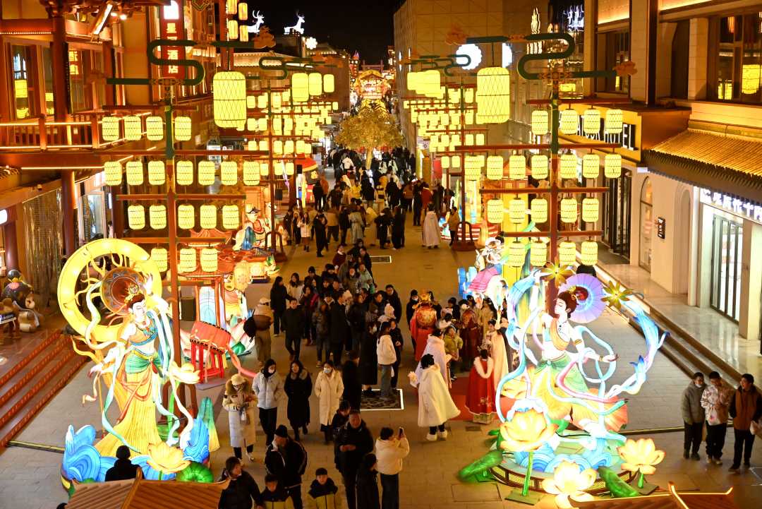 1月9日晚,游客在甘肃省敦煌夜市游览选购特色文创产品。2025年入冬以来,甘肃省敦煌市采取制定出台冬春季旅游优惠政策、举办敦煌灯会、增开加密冬春航季航班、经典剧目常态化演出等多项举措,吸引游客来敦煌参观游览体验,不断激发冬春季旅游市场活力。
