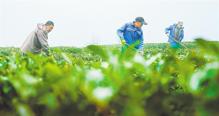 2025年12月21日,上饶市铅山县武夷山镇仙山岭,茶农在茶园除草。近年来,该县大力推行病虫害绿色防控、绿色生态套种等技术,打造茶叶绿色高产高效茶园,推动茶产业成为富民产业。