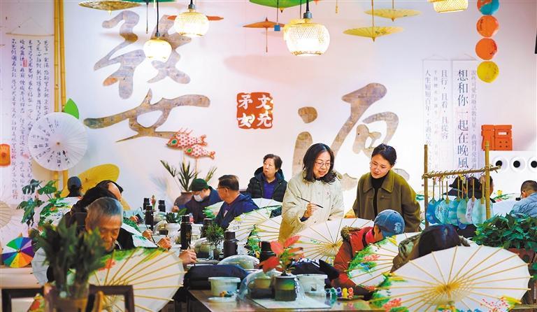 2025年12月22日,上饶市婺源县思口镇前坦村矛文女元婺源非遗体验中心,游客在体验婺源油纸伞制作技艺。当地不断丰富旅游产品供给,从单一的观光游览向深度体验、休闲度假转变,持续加大市场推广、丰富业态布局、优化市场秩序,旅游市场活力不断释放。