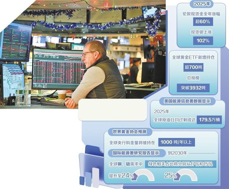 总体来看,2026年全球宏观经济环境将呈现“弱复苏、宽货币”特征,IMF最新预测显示,2026年全球国内生产总值(GDP)实际增速将达到3.1%,相比2025年较为放缓;市场预期美联储2026年至少将降息100个基点,并可能结束缩表,对金融属性强的大宗商品形成利好。市场分析人士认为,从投资角度看,2026年世界大宗商品市场将迎来“战略安全、绿色转型、新兴需求”这三大结构性机会,而市场分化格局仍将延续。