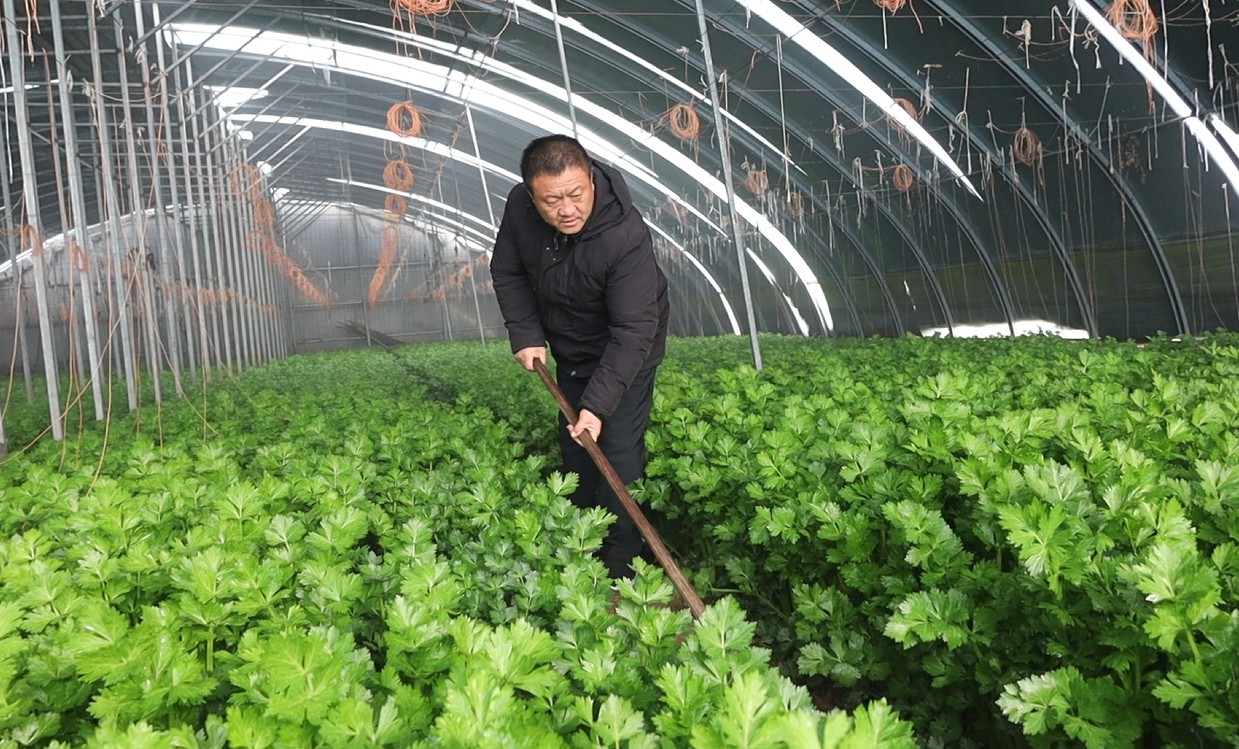 在范县张庄镇葛楼村蔬菜大棚内,农户正在忙着对芹菜进行田间管护。王兆朔 摄
