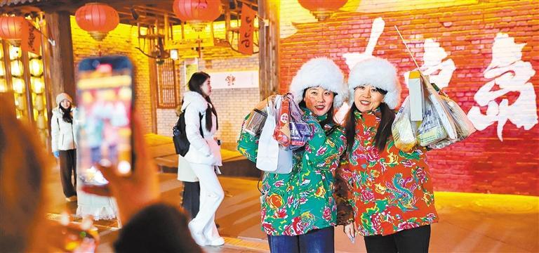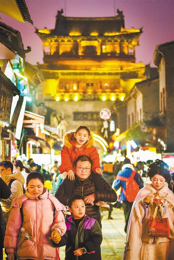 1月2日,游客在河南省洛阳市老城历史文化街区游览,感受千年古都的夜间魅力。 黄政伟摄(中经视觉)