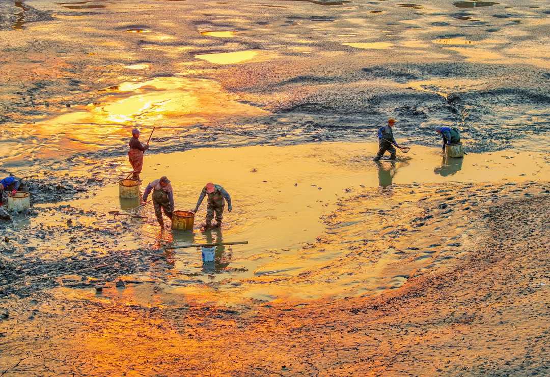 1月15日,浙江省湖州市长兴县夹浦镇陶家湾村,村民在干塘里捕鱼。
