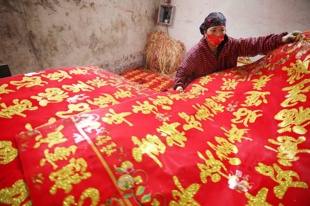 1月15日,河南省焦作市温县赵堡村,村民在印刷春联。