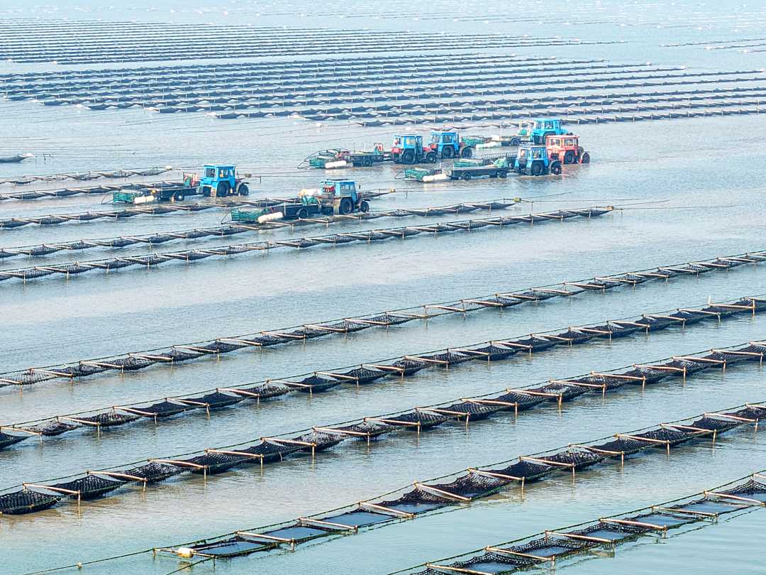 1月15日,江苏省南通市如东县长沙镇滨海村紫菜养殖区,养殖户在收获头水紫菜。据了解,如东县条斑紫菜海上养殖面积近8万亩,紫菜产品出口40多个国家,已形成紫菜育苗、养殖、加工、销售全产业链条,全行业年产值近40亿元。