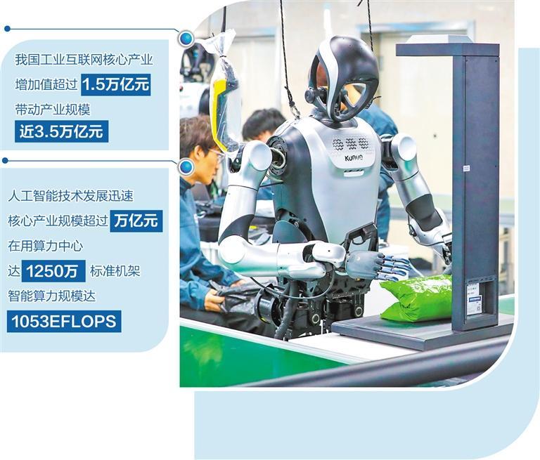 经过多年发展,我国工业互联网已由战略谋划、起步探索、快速推进迈入高质量发展、规模化应用阶段,核心产业增加值超过1.5万亿元,带动产业规模近3.5万亿元。人工智能技术发展迅速,核心产业规模超过万亿元,在用算力中心达1250万标准机架,智能算力规模达1053EFLOPS。