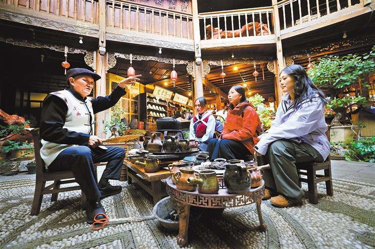 曾经徒步走马帮的谷荣桂,在丽江古城自家庭院里边展示古法烤茶,边向游客讲述当年茶马古道的艰辛与繁华;艺术家古原来到丽江,将传统民族元素与现代艺术装置相融合,向世界推介丽江传统的魅力;曾经在外闯荡的和玉月回到雪山脚下的“石头村”玉湖村,与父亲办起纳西族“家访”,让外地游客深度体验纳西族火塘文化……丽江市坚持以文塑旅、以旅彰文,打造“舍不得的丽江”旅游IP,提升丽江文化旅游品牌影响力。