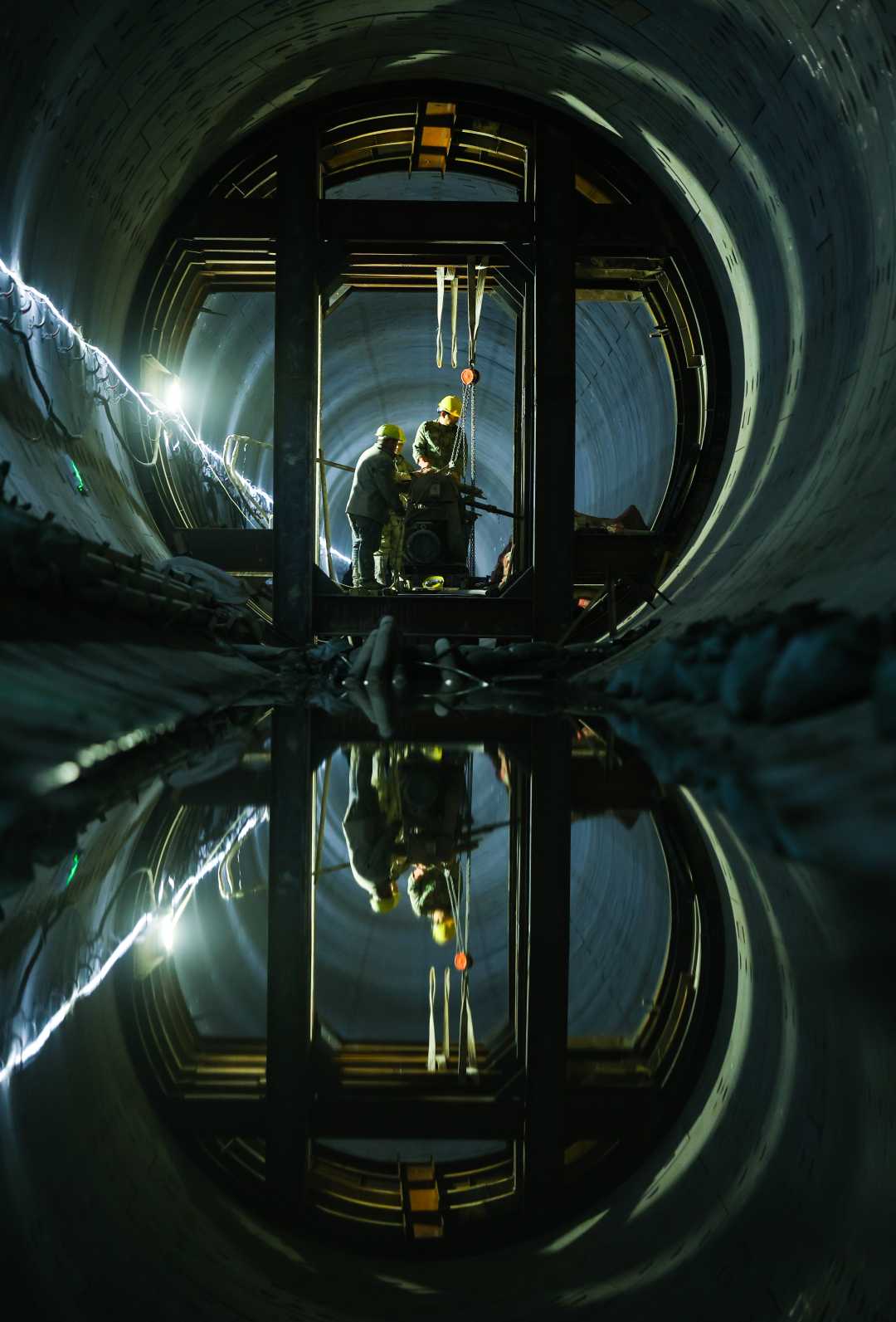 1月19日,工人在河北省石家庄地铁6号线一期工程隧道内施工。