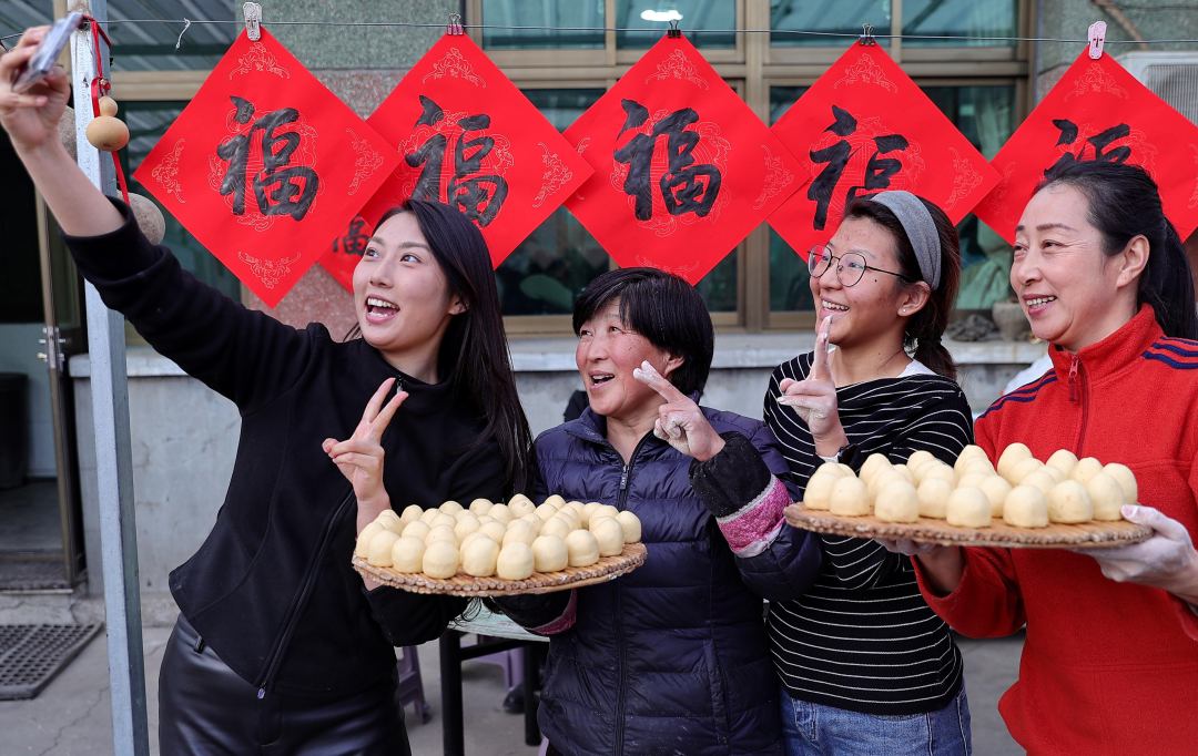 1月19日,河北省秦皇岛市驻操营镇龚庄村,村民一起制作粘豆包,分享香甜。