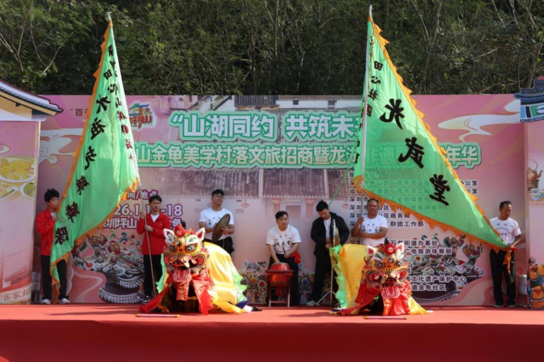 1月20日,记者从深圳市坪山区委宣传部获悉,以“山湖同约•共筑未来”为主题的首届坪山金龟美学村落文旅招商暨龙湖非遗融坪嘉年华近日在坪山区举行。作为深入贯彻落实“百千万工程”的创新实践,本次活动旨在深化农文旅融合、打造高质量发展新引擎,推动区域协调发展。