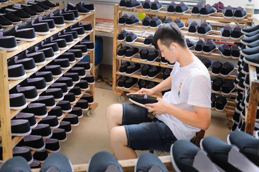 故事的起点,源于一份对传统工艺的执念。上世纪80 年代,长期穿机制鞋患上脚气的黄建华,想起了母亲手工缝制的毛底布鞋——透气舒适、走路稳健,那是刻在童年记忆里的温暖。“母亲的手艺是祖上传下来的,不能就这么断了。” 在母亲的全力支持下,黄建华潜心钻研下料、纳底、绱鞋等全套技艺,2001年,他在鄢岗镇创办了小型鞋厂,开启了毛底布鞋产业化的探索之路。