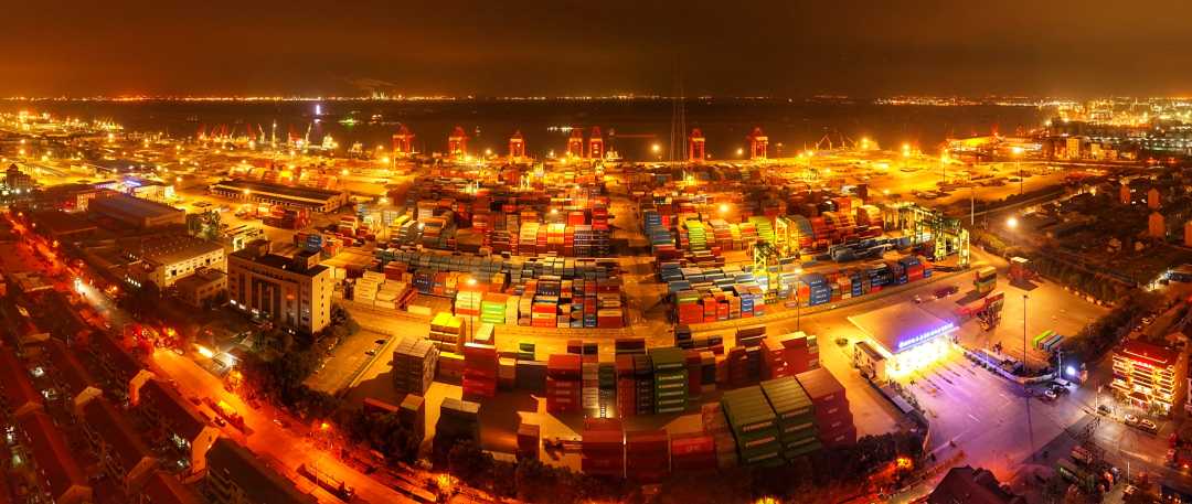 1月25日晚,江苏省张家港永嘉集装箱码头灯火通明,工人们操作设备有序进行装卸作业,一派繁忙景象。