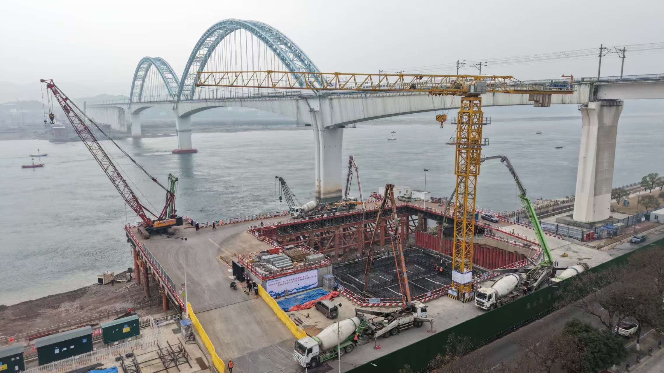 1月24日,由中铁大桥局承建的世界首座分离式钢桁梁斜拉桥——宜昌长江公铁大桥7号、8号主塔承台第二次浇筑作业顺利完成,项目正式转入主塔施工阶段,为2029年建成通车筑牢坚实根基。(资料图)