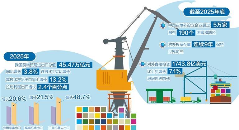 二是推动贸易与投资相互牵引、协同发展。要打破贸易与投资各自为战的传统模式,有序推进海外投资布局,形成以海外投资撬动进出口贸易、以进出口贸易需求引导投资流向的新模式。根据进出口贸易流向变化引导对外投资,鼓励企业面向东盟等周边国家、共建“一带一路”国家市场投资,引导企业以投资为先导,将新技术、新业态、新商业模式进行本地化适配,在海外建设生产基地和营销网络,持续拉动我国高端中间品、成套设备和技术服务的出口。此外,要构建高效的海外综合服务体系,整合通关、物流、金融、法律、咨询等全链条服务,推动数字化升级,打造一站式平台,为企业出海保驾护航。
