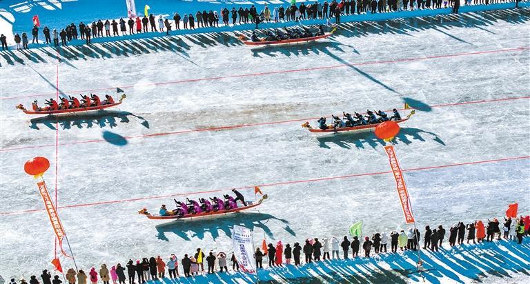 1月18日,吉林省白城市大安冰雪季文旅活动开幕,选手在嫩江湾嫩西湖上竞逐冰上龙舟。当地打造文旅+冰雪新业态,让冰雪“冷资源”变身富民“热产业”。孙立君摄(中经视觉)