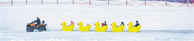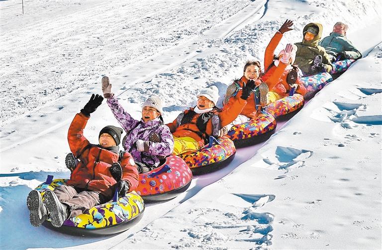 1月11日,河北省秦皇岛市石门寨镇老君顶景区,游客坐上滑雪圈,畅享冰雪运动带来的快乐。曹建雄摄(中经视觉)