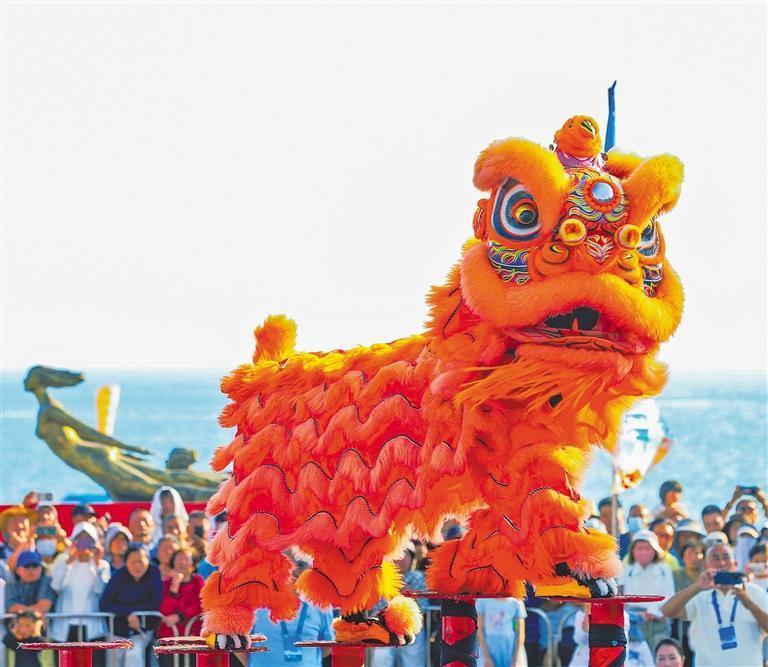 1月18日2026“三亚杯”国际龙狮精英赛在海南省三亚市大东海旅游区广场开赛,全球24支龙狮队伍同台竞技,展示中华优秀传统文化的魅力。叶龙斌摄(中经视觉)