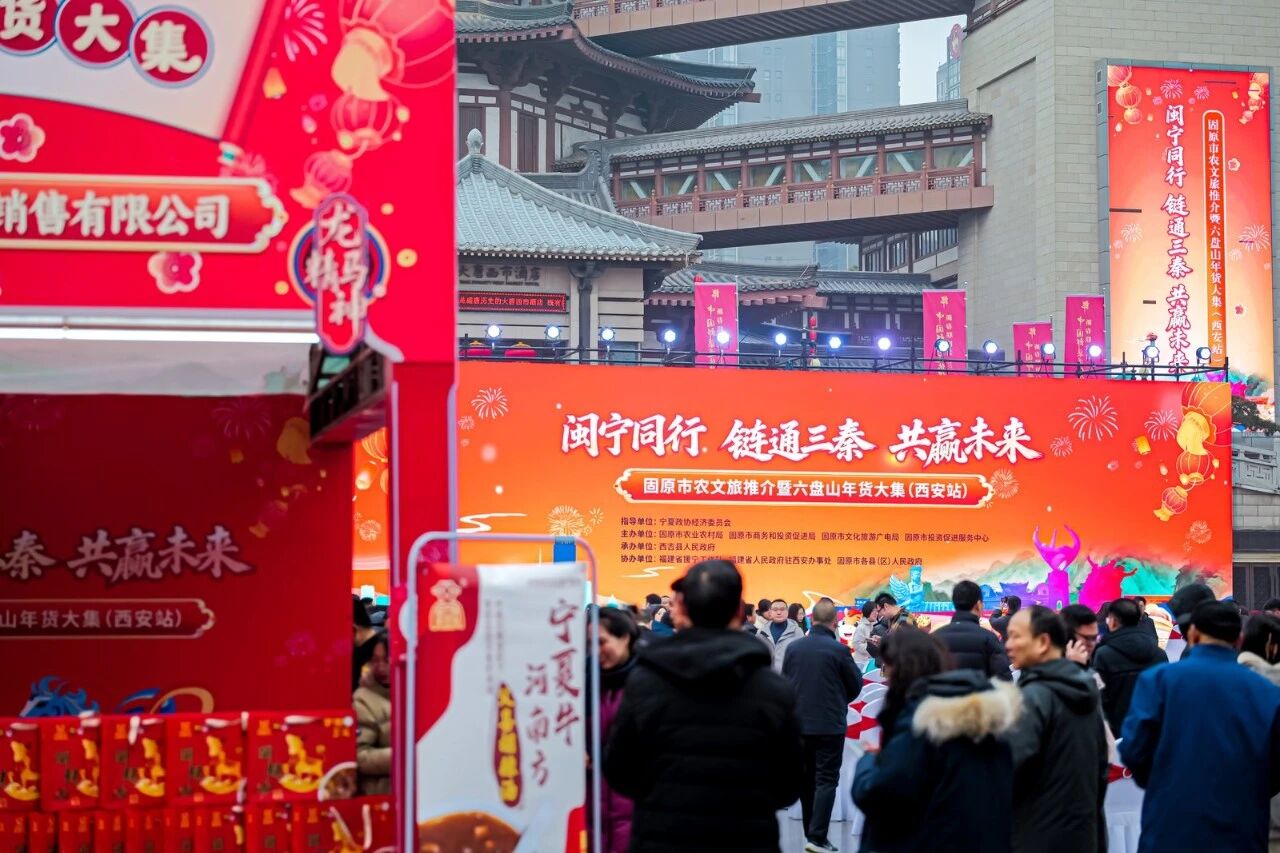 1月30日,“闽宁同行·链通三秦·共赢未来——2026年宁夏固原市农文旅推介暨六盘山年货大集(西安站)”活动在陕西西安大唐西市文化景区启幕。本次活动以农文旅融合推介与特色年货展销为载体,既是固原市深化闽宁协作、推动陕宁合作的一次创新实践,也是一场携着六盘山深情厚谊、面向西安市民与各界客商发出的诚意邀约。