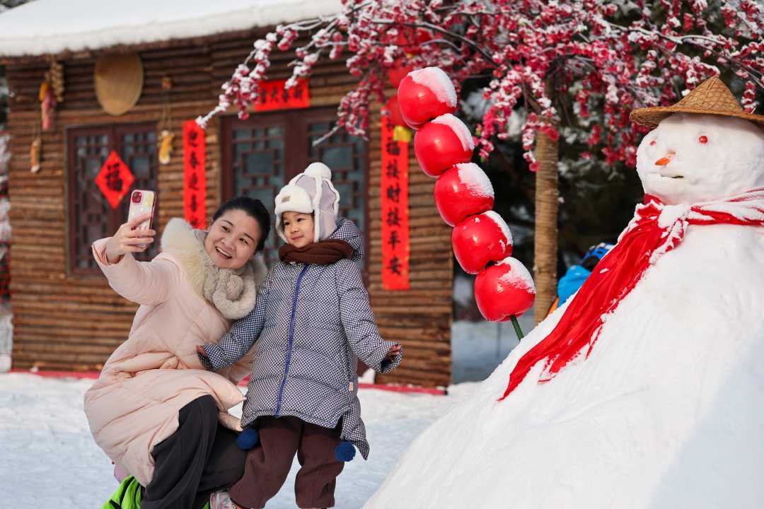 1月31日,游客在河北省石家庄市鹿泉区西部长青冰雪小镇打卡拍照,乐享冬日美景。