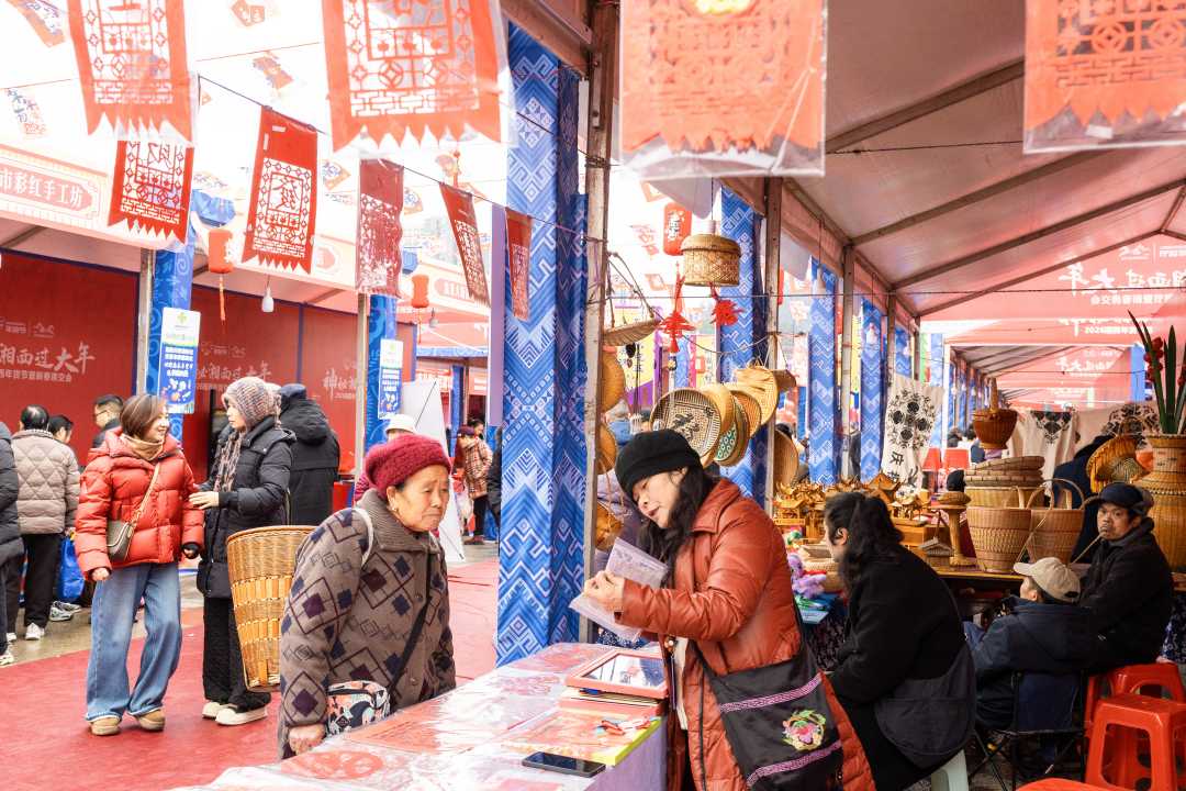 1月30日,湖南省湘西土家族苗族自治州吉首市世纪广场,消费者在年货大集采购商品。