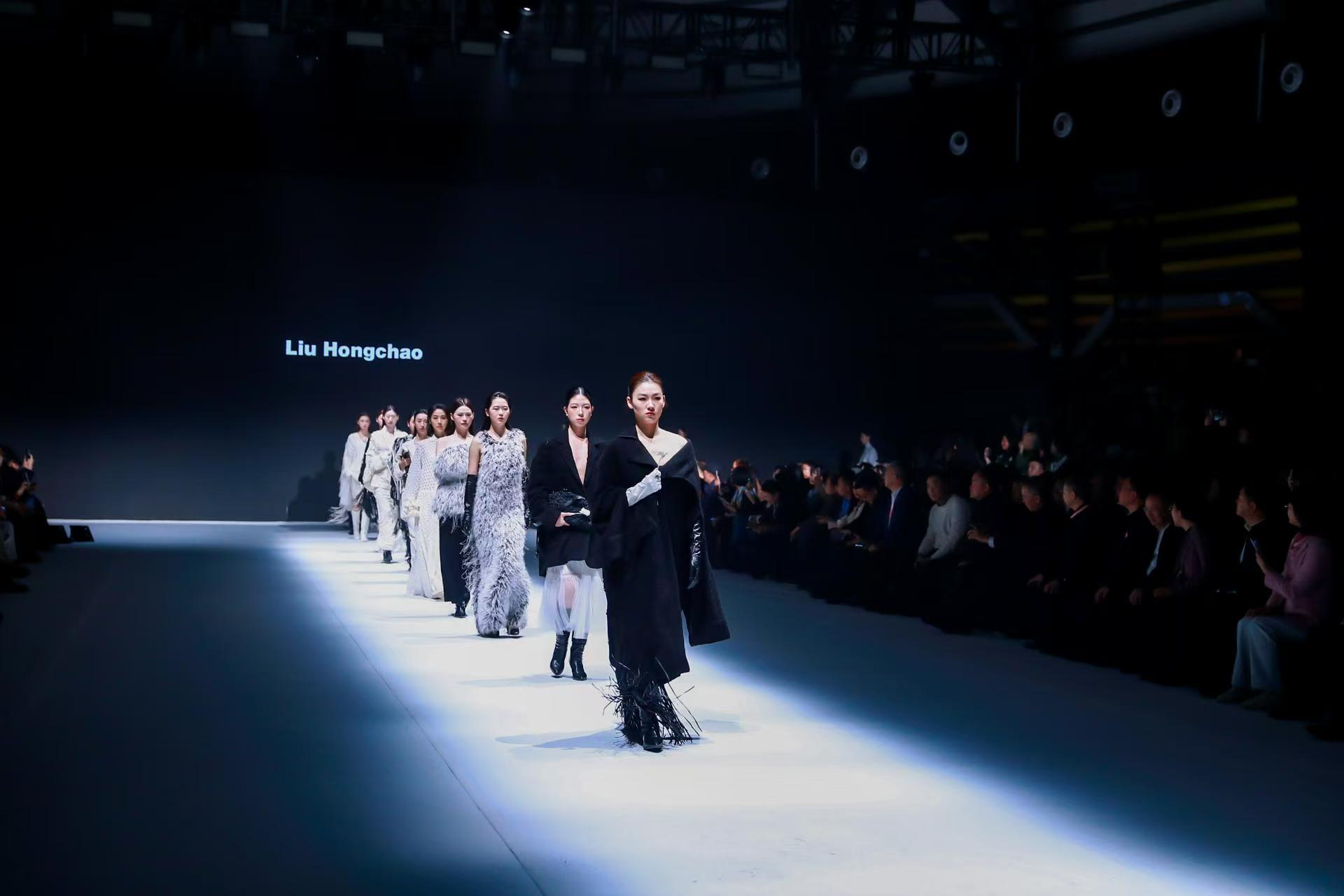 首秀现场,“中国十佳设计师”马乖携素白品牌《一念起》系列亮相,诠释了“少即是多”的时尚哲学;“中国十佳时装设计师”刘洪超的《情书》系列,以细腻的针脚与温婉的色调,勾勒出浪漫主义的诗意画卷;“中国服装行业百强”魔美名作以《俏春》系列展现活力与优雅的平衡。70位模特与演员通过缝纫机表演秀、纺织纱线秀、机器人仿生蝴蝶秀等创意形式,演绎沉浸式大秀《万物生》。