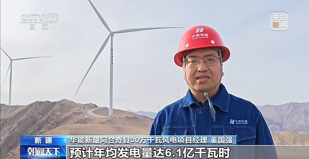 华能新疆阿合奇县30万千瓦风电项目经理董国强表示,项目全面投产后预计年均发电量达6.1亿千瓦时,可满足2万户家庭全年用电需求,相当于每年减排二氧化碳超50万吨,将有效增强当地能源保障能力,持续助推绿色低碳发展。