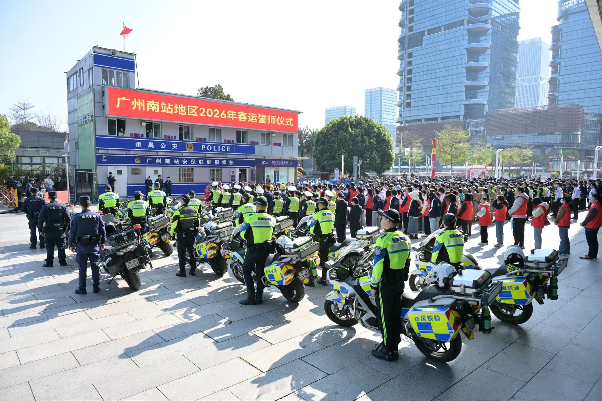 随着首日列车陆续发出,广州南站正式进入“春运时间”。未来40天,这座华南重要交通枢纽将迎接超2135万人次的到发旅客。2月2日上午,广州南站地区春运工作领导小组召集成员单位,隆重举行2026年春运首日誓师仪式,全面打响春运保障攻坚战。