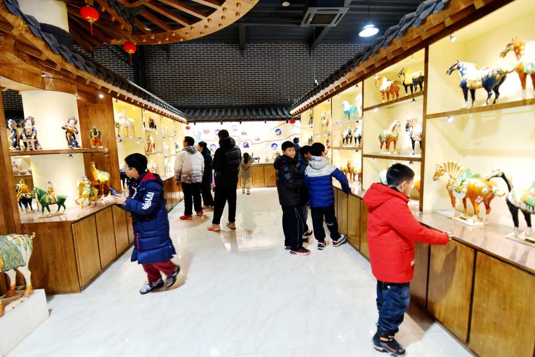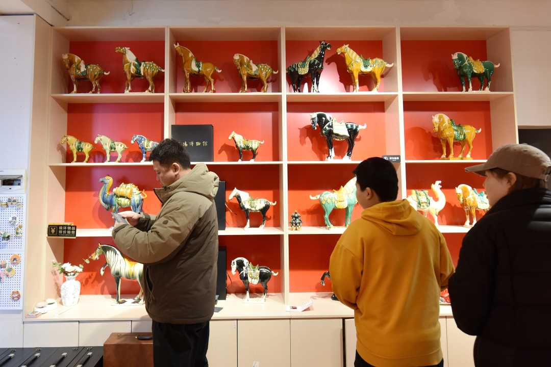 走进南石山村,沿街的帝都新陶艺术馆、博艺萱三彩艺术馆、乐淘天香瓷艺术馆、千韵陶瓷艺术馆等20多个展馆内,各种文创三彩产品琳琅满目,让人目不暇接,前来选购三彩产品的游客和客商络绎不绝,让三彩马出现紧俏断货现象。在高家三彩博物馆,来自洛阳市的张占强,挑选了一对心仪的三彩马,准备送给在南方工作的朋友。他说:“高家的三彩马,不仅工艺精湛、造型逼真、三彩艳丽,而且出自高水旺大师之手,加之2026年又是马年,送给朋友很有范儿,也最能表达我的心意”。