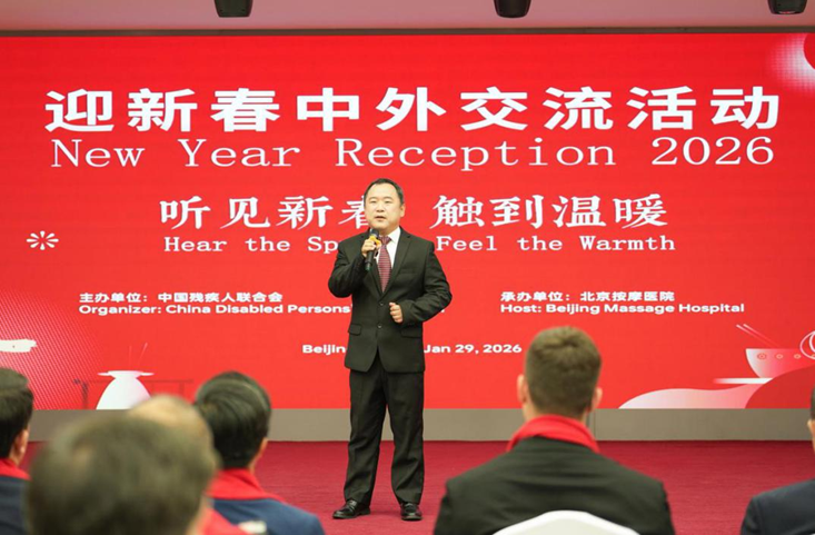 近日,中国残联在北京按摩医院举办“听见新春·触到温暖”2026年迎新春中外交流活动。来自30多个国家驻华使馆、联合国和国际组织驻华机构、外国机构和外资企业以及中方有关单位代表等约150位嘉宾出席活动。
