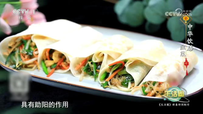 如今,南方立春吃春卷,北方“咬春”多是吃春饼。韭菜、胡萝卜、豆芽和鸡蛋是春饼中常见的食材搭配,将春饼卷成筒状,从头吃到尾,寓意“有头有尾”。