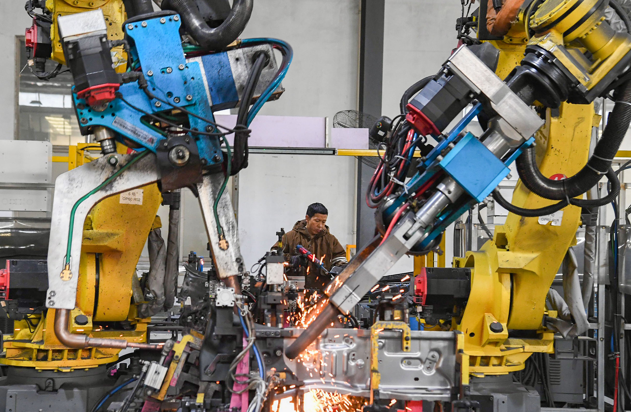 2月3日,位于浙江省金华市金东区岭下镇的佳通汽车科技(浙江)有限公司生产车间,工人在加工新能源汽车配件。