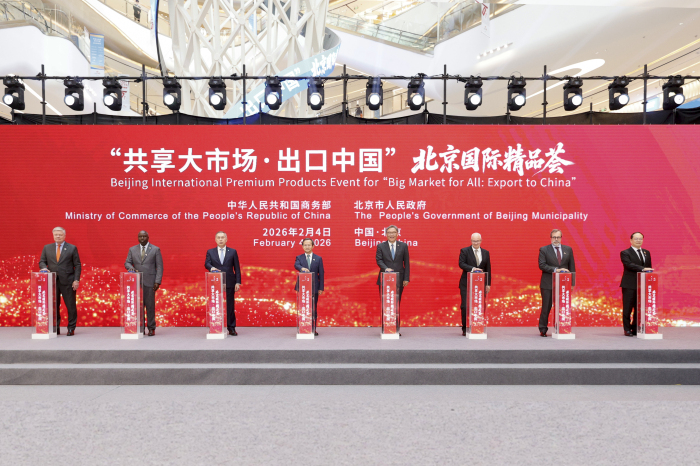 2月4日,“共享大市场·出口中国”2026年首场活动在北京举行。商务部部长王文涛、北京市市长殷勇出席并致辞。英国、哈萨克斯坦、葡萄牙、肯尼亚、泰国、芬兰等国家驻华大使及中外嘉宾150余人出席。