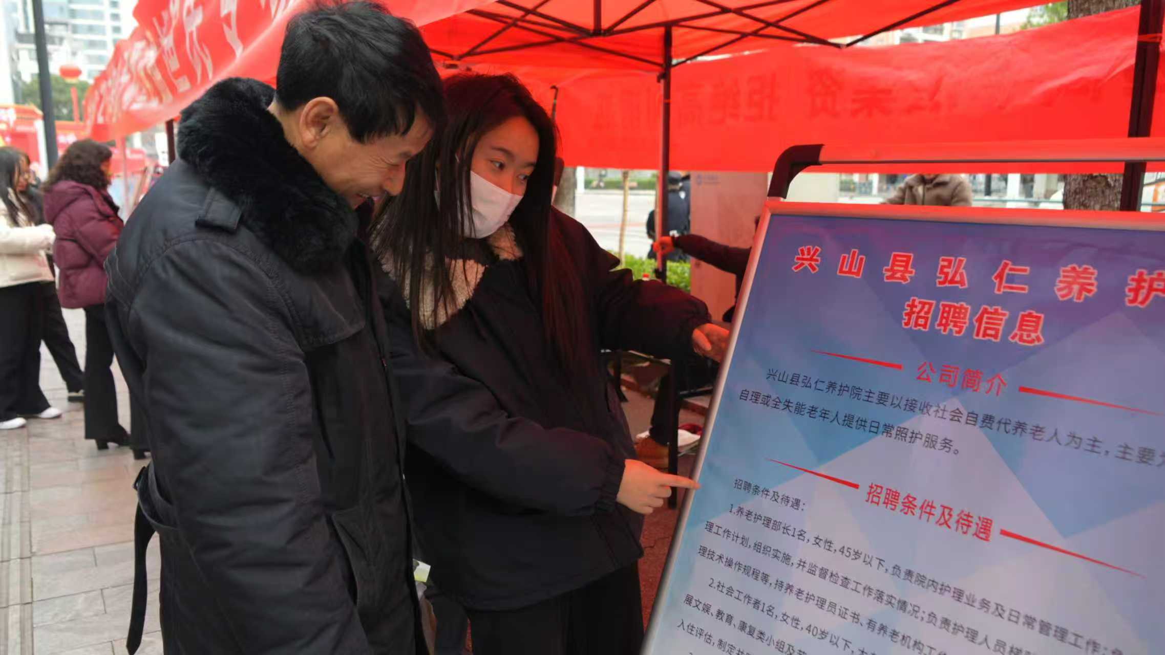 招聘会现场,多家本地和外地的企业在现场设立了展台,前来咨询的人员络绎不绝。兴山弘仁康复医院有限公司提供了医生、护士、保洁等10多种岗位,此次计划招聘50人。“这样的平台很好,让老百姓能在家门后找到适合自己的工作,同时也解决了企业的用工需求。”短短1个小时,兴山弘仁康复医院有限公司工作人员张祖雄收到了20多人的求职意愿。