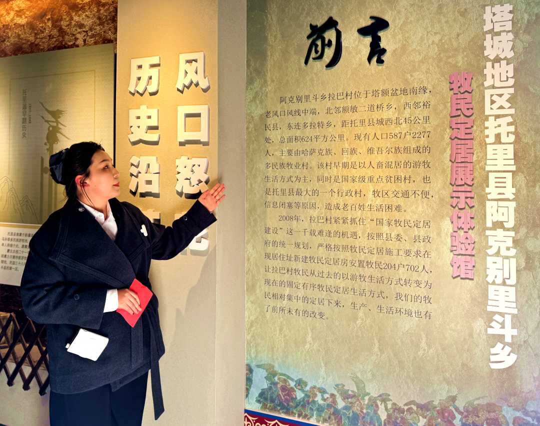工作人员在介绍拉巴村的发展历程。邓雨晶摄