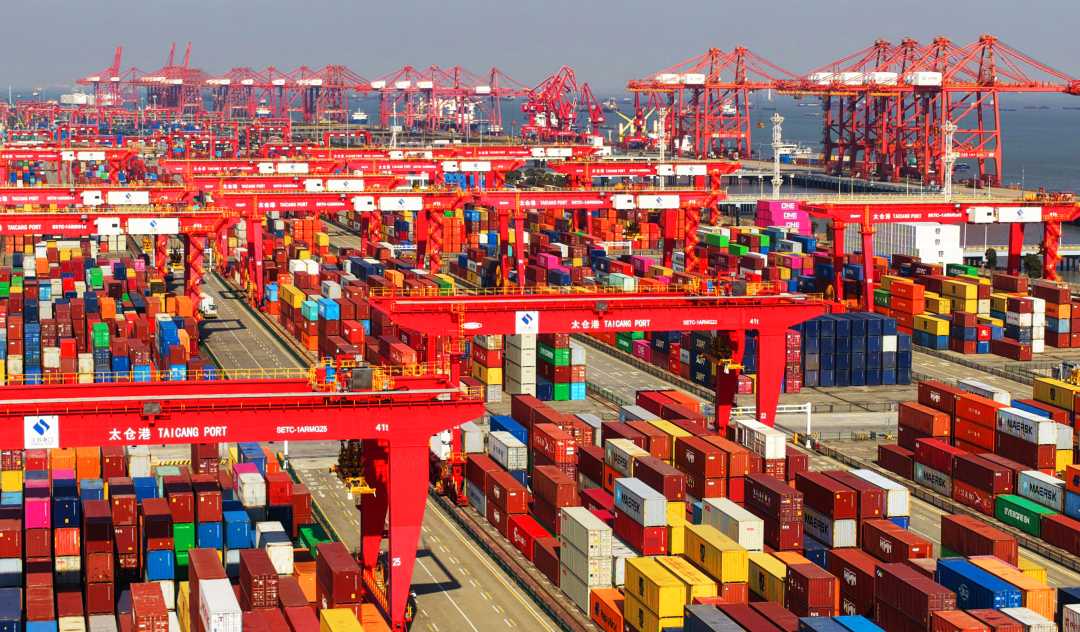2月9日,江苏省苏州港太仓港区集装箱吞吐作业繁忙有序。